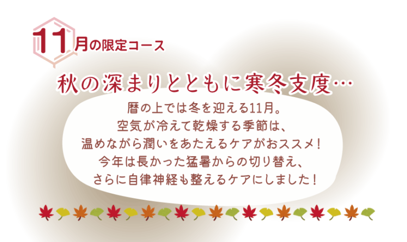 11月限定ボディ60分とフェイシャル80分のセットコースです!