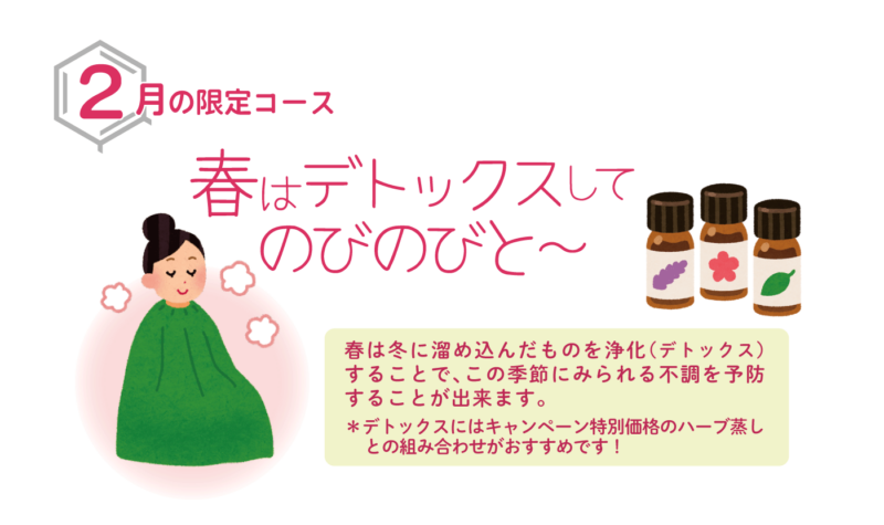 2月限定コースとあわせてご予約頂きますと『ハーブ(よもぎ)蒸し』が特別価格でお受け頂けます!